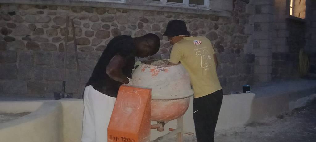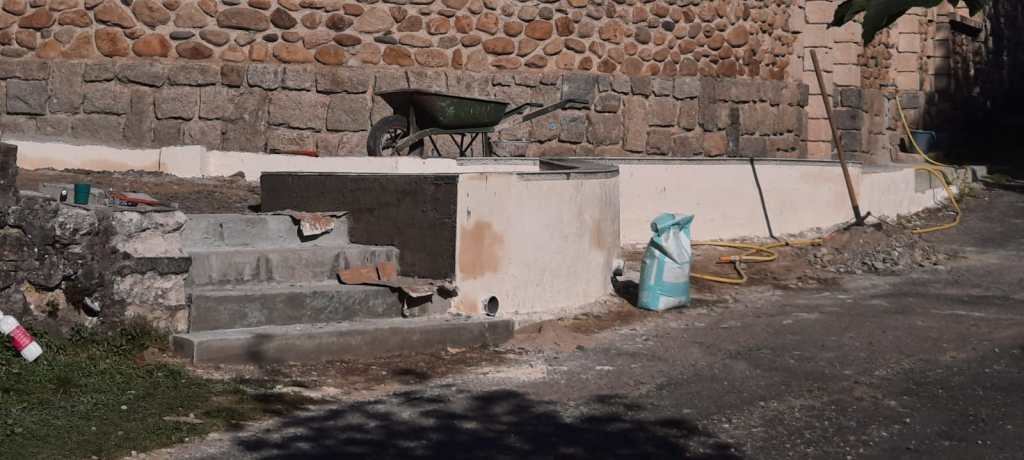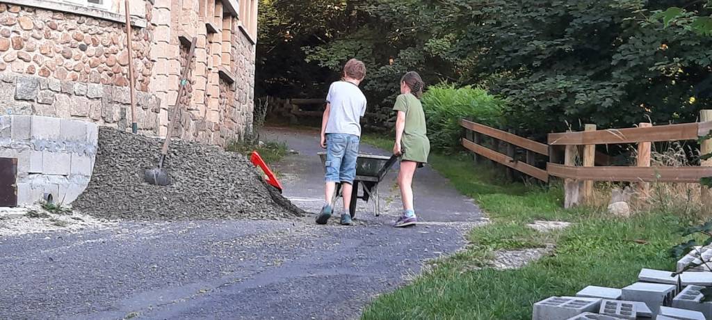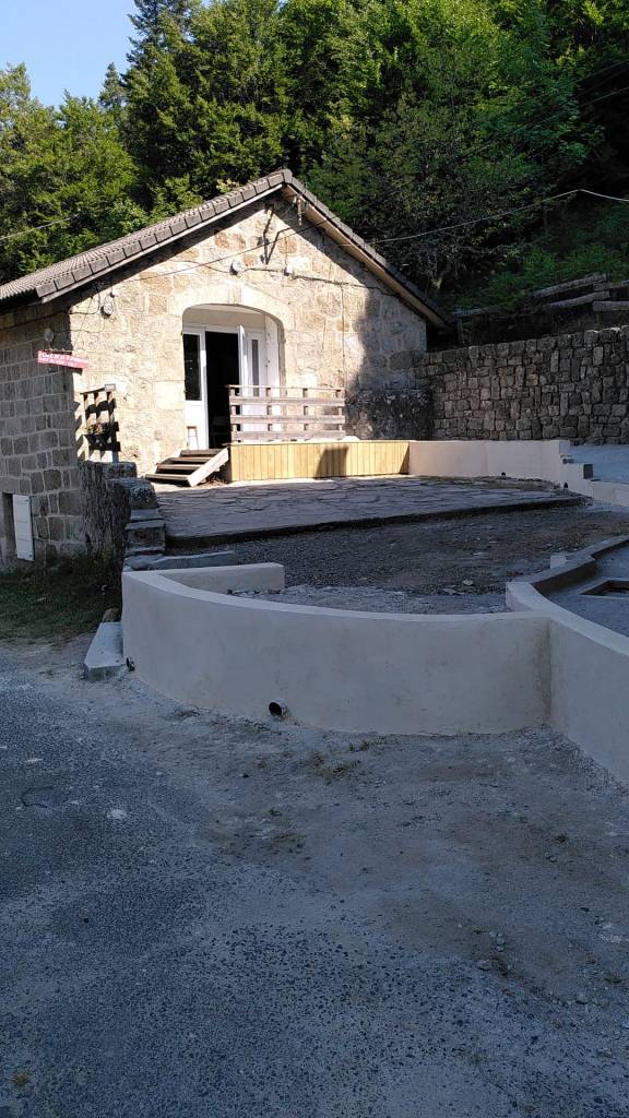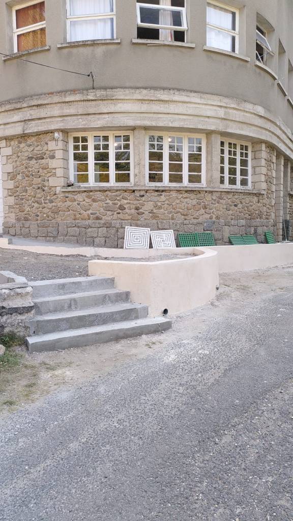 Les toilettes situées au niveau des dortoirs du bâtiment B sont opérationnelles ; les portes des dortoirs ont pris un coup de frais ; la place de rassemblement prend forme et on « n’a plus qu’à » poser une chappe et intégrer des lauzes afin qu’elle prenne son apparence définitive.